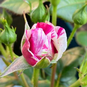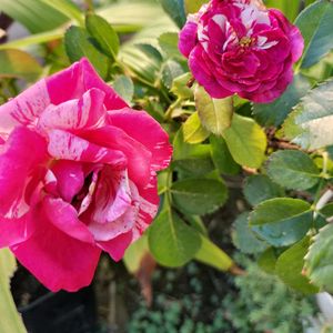 今日は朝から花壇の植え替えなどしていたらあっという間に3時間経っていました❗️ 庭のバラが次々と咲くので用事がなくても庭に出ています☺️ pic1.ノヴァーリス 庭のバラの中で一番最後に開花しました! 本当に強健で、隣に置いてるバラが黒星病だらけになっても全然うつりません😳 pic2.エブリン 昨日の強風で鉢ごと倒れたり風にやられたりでボキボキになってしまいました😂 残った花は綺麗に咲いてます✨ コガネムシだらけだったけど、5/14に薬剤散布して少しマシになりました! pic3.ジュビレデュプリンセスドゥモナコ 花付きがよくどんどん咲いています✨ pic.4ベビーロマンティカ こちらも花付きは良いですが、灰色カビ病っぽい蕾がポツポツ💦 pic.5センテッドジュエル 写真撮るのが遅くて退色してきています💦 やっぱり絞りのバラはかわいい😍