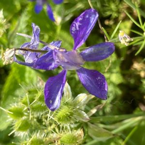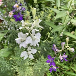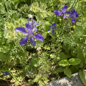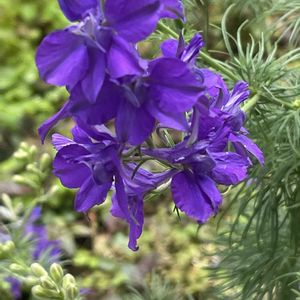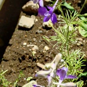 楽しい形のお花が咲いていました😊 ヒエンソウ キンポウゲ科デルフィニウム属のお花。 和名はチドリソウとも。 初めてのお花だったと思います🤗