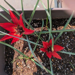 プランターのチューリップやっと咲いた。ムスカリと一緒に植えたんだけど全然でてこない。多分球根がだめだったのかも。チューリップも原種系の品種で地味…あんまりなのであとから花の種も蒔いておいた。