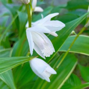 初めて見ました! 紫蘭の 白色です。「シロバナシラン」