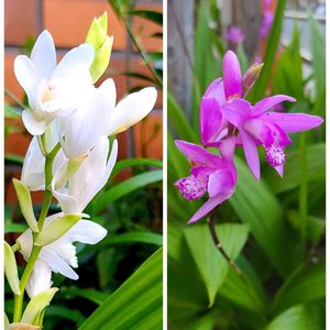 右:シラン(紫蘭) 左:シロバナシラン(白花紫蘭) 今朝の散歩中に見かけました。 シランは私がGSを始めた2年9ヶ月前の投稿第1号の思い出の花です。