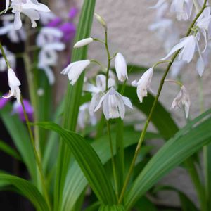 純白のシランはシロバナシラン(白花紫蘭)と呼びます。 紫蘭と言えば赤紫が一般的ですが純白の花は一際清楚で綺麗です。 耐暑性・耐寒性とも強く、偽球茎(扁平な地下球)と花後の実(熟すと下部が裂けて種が飛散)で増えていきます。 日本・中国・台湾原産。 ラン科シラン属の宿根多年草。