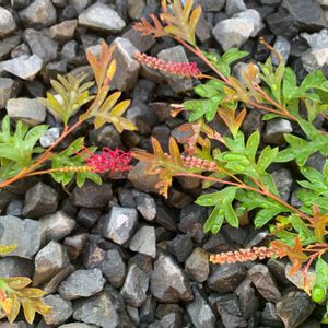 ふた株植えたガウディさん はやくもお花の交差点🚦 こんなに成長早いならもう少し離して植えれば良かった(笑) 秋になったら剪定しながら、挿し木で増えればいいなー挿し木つくかなー? って切る前に妄想中☁️☁️ 妄想の中ではグレビレアのカーペット完成!