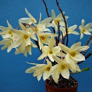 屋久島産黄花 私の師匠の選別品で高さ50cmを越える大株です😊洋蘭に負けないこの迫力😄 師匠は南西諸島を中心に活動して、赤花セッコク雷山、サツマチドリを世に出しました😆 この品種もオキナワセッコクに近い細軸タイプです☺️大きいセッコクも良いですね☺️