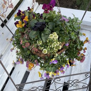 こんばんは😊 ハンギング 寄せ植え やってみました🌱🌸🌱🌼🌱🌺🌱😆