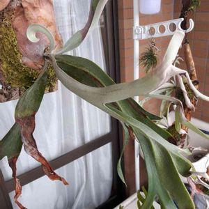 スパーバム(たぶん)☺🌿 この朽ち果てた古い貯水葉と新しい白い貯水葉のバランス‼ 非常にGoodです👍👍👍👍👍 胞子葉が写真撮れないくらいデカイ&胞子沢山つきました💦 成長点モリモリきてるので、反対貯水と胞子出揃いそうです🎵 やばいこれ、邪魔だけど、絶対カッコ良くなる感じ🙌🎶