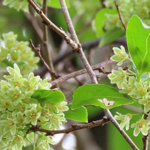 ⬆️1/11 ⬇️1/17 新津丘陵  ❄️クイズ冬芽葉痕❄️  ア〜、腰が痛い‼️。雪が降って、止んで、また降って・・・午前、午後、晴れ間をぬって、雪の始末・・・雪が重い、腰が痛い‼️。 ❄️❄️❄️☃️☃️☃️❄️❄️❄️  オイラみたいな奴が、クイズ連投とはおこがましい。コノ娘だって、花芽が有るから分かる様な物で、葉芽だけなら素通りです。マァ、オイラの縄張りで、何処の里山でも普通に見る事ができます。 『冬芽の葉芽は長さ1〜1.5cmの紡錘形。基部に丸い花芽がつく。花芽の柄には淡褐色の毛が生える。葉痕はほぼ円形で小さく、維管束痕は弓状で1個』(樹に咲く花)  春が待ち遠しいのはコノ娘も一緒。 ❄️❄️❄️☃️☃️☃️❄️❄️❄️  雪が続く為、巣籠もり中‼️。腰が痛くて、休息中‼️。 【追記】  オオバクロモジ(大葉黒文字)クスノキ科クロモジ属の落葉低木。クロモジの日本海側型変種。クロモジとともに高級楊枝の原料。  花芽の姿が個性的です。鈴の音が聞こえてきそうです。フルール・ド・リス(百合の紋章)に見えます。  花芽を見つけたら、クロモジ(オオバクロモジ)か、アブラチャン(ケアブラチャン)か、確認が必要です。コノ娘達、花が咲いても、良く似ています。 💦💦💦☃️☃️☃️💦💦💦  クロモジとオオバクロモジ、同様にアブラチャンとケアブラチャン、日本海側型変種と言われても、オイラ、母種を知らないので、いまだに区別できません。