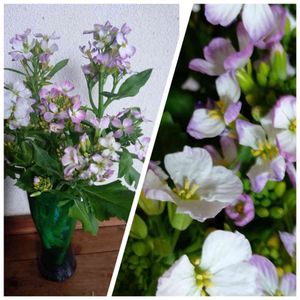 大根の花🌺 我が家の庭にさいたハナダイコンとは調べて違う事が解りました🎶 何時も食べてるあの大根の花です。皆さん知ってましたか?そんなの知ってるよ(^-^) 農家の直売店のおばさんから、天候の変化で 急に暑くなったりで、収穫が間に合わなく、きがついたら花が咲いて困ってしまったようです。 大根は処分しなければならないしで大変です😂 1束300円🌺沢山あり 優しい花色あい癒やされますね。野菜の花いいね(^-^)