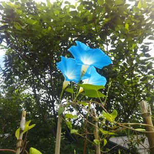 秋の気配に負けずに 朝顔が咲いていました☺️