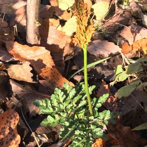フユノハナワラビ(冬の花蕨) 本州から九州の向陽の山地に生える オオハナワラビに似ているが、鋸葉 が、鈍頭である 秋保大滝植物園