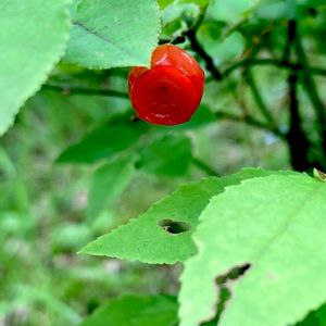 ウスノキ(臼の木) 果実 *ツツジ科スノキ属 花期は4〜5月 果期は7〜9月 北海道、本州の主に日本海側、四国.九州北部の低山帯〜亜高山分布する落葉低木。 花を見る前に、既に赤い果実ができていました。 名前は、この果実の形を臼に見立てたもの! 果実は5稜あって甘酸っぱく食べられます❗️