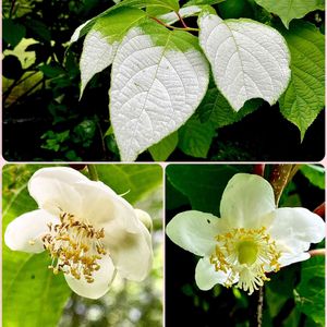 マタタビ(木天蓼) 別名 夏梅 *マタタビ科マタタビ属 花期は6〜7月 全国の湿り気のある山地の林縁に自生! 芽だしの頃は緑の葉が花期を迎える頃になると白くなります。ハンゲショウの様に訪花昆虫への目印としての役割があるようです。(ただ相当長い間 白いのでだまされる昆虫も多いのではないかと 思います😆) 雌雄異株で 雄花の咲く雄株と、雌花.両性花の咲く雌株があります。 この日は雌花を見つける事が出来ませんでした。 秋保大滝植物園