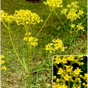 オミナエシ(女郎花) *オミナエシ科オミナエシ属 花期は8〜10月 沖縄を除く日本全土の日当たりの良い山野の草地や林縁に自生する。 秋の七草の一つ! 和名の由来は同属で似た白花のオトコエシに対するもので、全体が優しい感じがする事からのようです。 秋の七草として古くから親しまれ、切り花とても楽しむことが出来ますが、香りはあまり良くないので注意ですね! 仙台市秋保大滝植物園