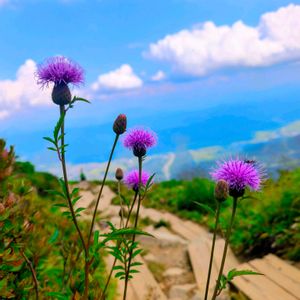 ~ ドラマで観た景色の山は何度も登りたくなる山だった / 北アルプス🏔️ 唐松岳 ⑯ ~ 八方池から山小屋の八方池山荘までの下山は白馬三山川に雲がかかり白馬三山も観れないこともあり行きに歩いた登山道コースではなく観光客も多く利用する歩きやすい木道コースが雲も少なく見晴らしが良かったのでそちらをを使いました😀 今日は木道コースで撮影した写真を🆙します🙋🏾 1枚目:タムラソウ 2枚目:ミヤマダイモンジソウ 3枚目:ハクサンシャジン 4枚目:イワショウブ 5枚目:パラグライダーで空中を降りてるように気持ちのいい木道♫