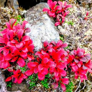 ~ リベンジ登山🚶🏾秋の北アルプス「唐松岳⛰️」⑨ 〜 午前9時に唐松岳頂上に着きました🙌🏾🙌🏾🙌🏾 リベンジ成功❗山頂からは前回見れなかった劔岳や白山、立山、そして間近には迫力ある五竜岳が🤩 前回は雲で隠れてわかりませんでしたが黒部湖(黒部ダム)の一部も見れました😱 北アルプスデビューの次男も大感激です😊 せっかくなので山の名前がわかるアプリを起動させて写真を撮りました🤳 山頂付近のハイマツのそばには真っ赤な葉っぱのウラシマツツジを見ることが出来ました🔴✨ そして芸術的なハイマツの枯れた部分も😍 但し台風並みの暴風が吹いていて力を抜くと飛ばされそうになります😂 前線が近づいて天気が悪化してるというのを身をもって感じました😆 今日は火曜日、この真っ赤なウラシマツツジで 🏷️真っ赤な火曜日 に参加させてくださいね🤗