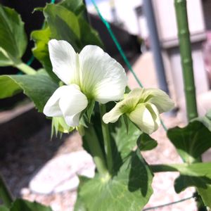 スナップエンドウ 我が家もお花が咲き始めました。 風が強いので、折れないか心配 です😊 今年は 早く食べれそうかしら?