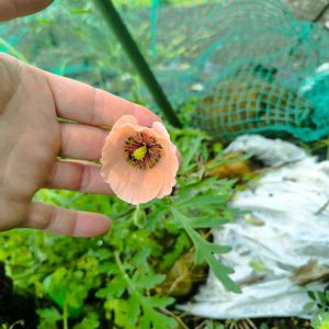 ナガミノヒナゲシが咲きました。 ちょっとやっかいなお花ですが、咲くと可愛らしいので、あちこちに… ペチュニアの鉢の中で一輪、大きなお花を咲かせました。 🏷らんまん応援♪