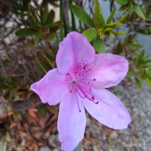 つつじ* 毎年4月に咲くのですが 今朝、一輪咲いていました。 温かい日が続いたから でしょうか?