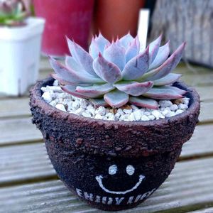 こんにちは おサボりがちです🤣 Sweetbasketちゃんのホーロー風リメ鉢#1 夏に体調崩してましたが復活したリラシナ かわいい💞