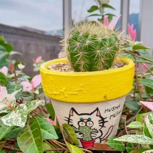 おはよう!☀ 今の所爽やかな風は吹いてるけど暑さは今日がピーク?てホントかな? 45茶魔のお嬢さんが描いてくれたねこ鉢 サボテンがぴったり❤