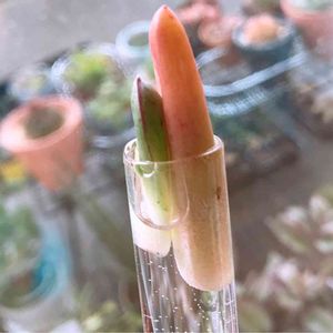 葉挿しを水につけとくと発根するって気になったから、ためしにやってみた(゚ロ゚) 水挿しのほう早い?のかな?? 出るのか~?出ないのか〜?