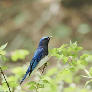 林の中で囀る•*¨*•.¸¸♪💙✨ 木のてっぺんで囀っていたオオルリくんが林の中で囀るようになりました😆💖 ②③ 羽繕い後で白い羽毛がでっぱなし🤣 もぅ、お茶目なんだから💕 ④ 真正面も素敵💓 ⑤ オオルリくんを撮っている間近に 咲いていました🤍 ヒメウツギ?