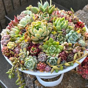 グリーンスナップマルシェ広島に行ってきました🍀 ビックバン、エケベリアだと説明がありました😳つぶつぶが素敵💓 爪が綺麗なアルケイン、しろーいトラムソ、名前で惹かれたグリーンジェラート、ぎゅっとしてるポップルエリオSPもゲットです。 リメ鉢も素敵なのをお迎えできて🥰グリネのおうち鉢と、絵本にありそうなわんこ鉢。 青空の下、どこの多肉も綺麗なプリプリで、見るだけでも満腹でした😋