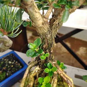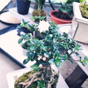 八重白鳥花の根上り。剪定と植え替えから2ヶ月、なかなか面白い盆栽になりました。(試行錯誤でしたが。)