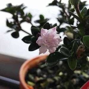 八重白鳥花の小盆栽 お花が見頃を迎えました。 この花が咲き終わったら剪定だー