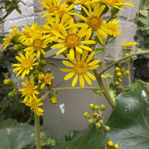 家のツワブキが咲き出しました🌼 一つの苗を植えてから、いまでは10本ほどまで増えました、成長の遅い植物なので、もったいなくて、まだ葉を料理した事はありません^ ^
