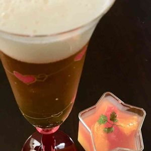 RonくんandElmarくんの昼散歩から帰宅 暑さでワンコヘロヘロ、私喉カラッカラ これは、星の真ん中に⭐️ハーブ🌿ミント が主役である 麦汁は、脇役(๑>◡<๑)