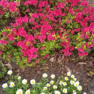 ノースポールの白と霧島ツツジの赤のコントラストがいいですね🤗 散歩道で出会いました✌️