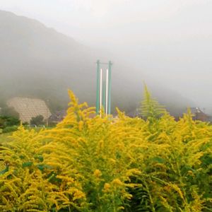 おはようございます🌸🌄 早朝神田川散歩🏃🌄 ①~③朝霧のセイタカアワダチソウ🌸 ④⑤散歩の途中にご来光🌄🙏