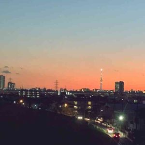 🌠🌠大都会の夕焼け空 ✰҉҈҉҈҉҈ 遠くに日本一のテレビ塔🗼 ✨🌟⭐🌟✨ スカイツリー🙀❣️ 娘から届いた一枚(*❛⊰❛)