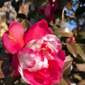 穏やかな日曜日(o^^o) 絞りの入ったサザンカが咲いています。 バラは剪定も誘引も終わり今は充電中〜 蕾が残ってるのもあるんだけど、しおしおになって咲きそうにないので切っちゃおうかなぁ🤔