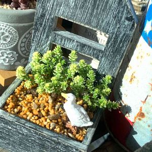 昨日セリアに寄ったら 小さなお家型の小物入れがあったから 買って帰って セダム入れてアヒル遊ばせた プロリフェラでも寄せようかと思ったけど なんかかわいいからこのままにした (*・ω・*)
