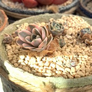 子持ち蓮華 鏡花 去年の秋に購入した子 綺麗な覆輪 知床産だそう この子もモリモリにしたいわ♥️