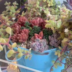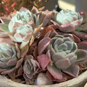 おはようございます😃 ブロウメアナ ホワイトクローンクロップ プロリフェラ ブロンズ姫のベビ~ モサモサになれ寄せ植え ↑何だそれ 笑笑 昨夜は仕事から帰宅し 雪から多肉を守るべく 多肉棚を窓側へ移動‼️ さらに不織布を被せてよし来い‼️ くらいの勢いでgymへ行き帰宅し 満足して寝て起きる 窓を開けるとそこはただの曇り空… まあ寒いし🥶月曜日も雪予報だし いっか😑 なので手前に置いてある子の 薄暗いpic