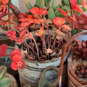 朝撮ると どうしてもオレンジが入る🧡 @ikuraちゃんの鉢の寄せ植え 最近の寒さに、どの多肉もギュッとしまって、隙間が増えてきたよー ピーチの皺がパない!