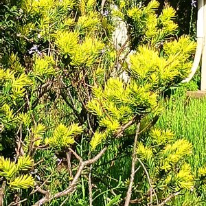 低木の針葉樹で葉が黄色です。