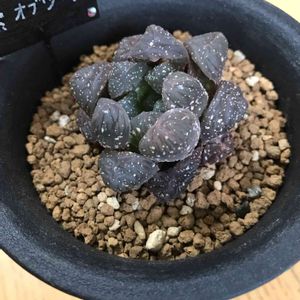 ハオルチア(紫オブツーサ・カキコ苗)です。 ポットに植え込んでから1週間。。 根も少しずつ伸びてる様ですが、掘り返して根を傷めるといけないので想像力で^^# 今日は、水やりをしました。