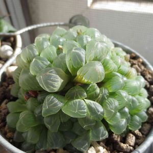 オブさまご一行…一部だけ ハオルチアはほとんどが室内にいます 北側~東側にかかるキッチン窓辺 窓を少し開けて通風を確保 ホンの少し朝陽が入るところは一部焼けあり それでも我が家ではここが一番いいみたい♪ やっと安心を手にいれました(笑)