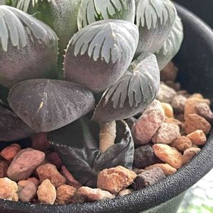 ハオルチアの紫オブツーサです😊 影の部分が濃い色に見えて綺麗です✨ はなむすびでゲットした子で、最初の私の土選びが悪くてやっぱり調子を崩したので、植替えしたら調子良くなって来たようです👍 植替え後、シワが出て来てからお水を上げたらぷりぷりになりました🥰