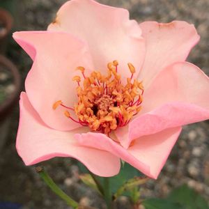 おはようございます♪ 🌹開花レース一位🥇は デンディベスさんでした、 でも雨にあたっていたせいかだらしなく咲いています。可愛い蕊が見えません🥹 2年目の春は蕾の勢いがすごい👍と驚いています😊
