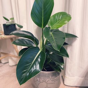 フィロデンドロン属🪴 大きいな葉は20cm以上あり存在感が凄いです。葉の色は濃い緑でふちが薄緑がまたかっこいい。 名前わかる方教えて下さい! グリーンプリンセスですかね?!