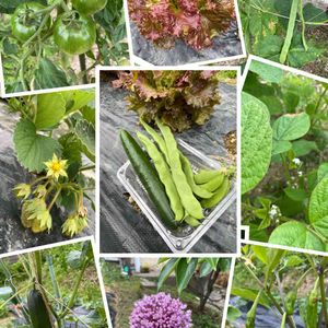 コンバンワ!!(๑^︶^๑)・.。:*・🌃 *今日の家庭菜園🥬🍅🫑 真ん中が今日の収穫です〜 (๑^︶^๑)・.。:*・🥒* 家庭菜園vol.5