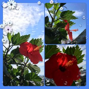 おはようございます☀🌿 今日は情熱の赤のハイビスカス🌺が咲きました❣️(o^^o)/ 今日まではなんとか良いお天気で、爽やかな青空に赤がよく映えますね♪💕 今週も元気にいきましょう❣️٩( ᐛ )و🌺🌼🌺🌼