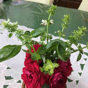 ミニ薔薇をカットしたので、バジルとコラボしてみました!! ٩(*˙︶˙*)۶可愛いでしょう♪❤ 🌹✨🌿🌹✨🌿🌹✨
