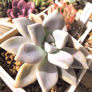 蒼星。 形はあまり良くないけれど、お日さまがあまり出ていない時間帯に見ると、更に青白く見えるキレイな子です♪ 葉挿しの赤ちゃんは、こんなに可愛いピンク色♡キュンキュンします(*゚▽゚*)o)))♡