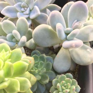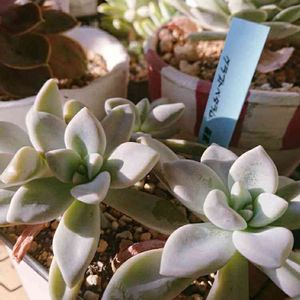 ゴースティンさん🍀 カリフォルニアサンセットさん🍀 蒼星さん🍀 ビラレンスさん🍀 パティピートさん🍀 名札なくなるとわからなくなる子達😅 グラプトペタルム、クラプトべリア、クラプトセダム 属が違ってもフラクトペタルム強くない?💦 色合いが若干違う的な😆 でもどの子も丈夫そうなのでしっかり成長して〜🍀